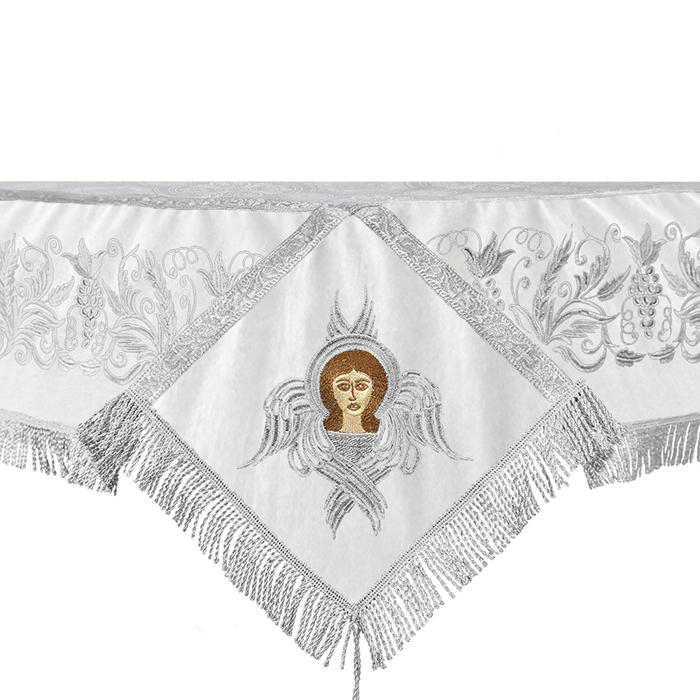 Пелена на престол комбинированная, белая с серебром, вышивка