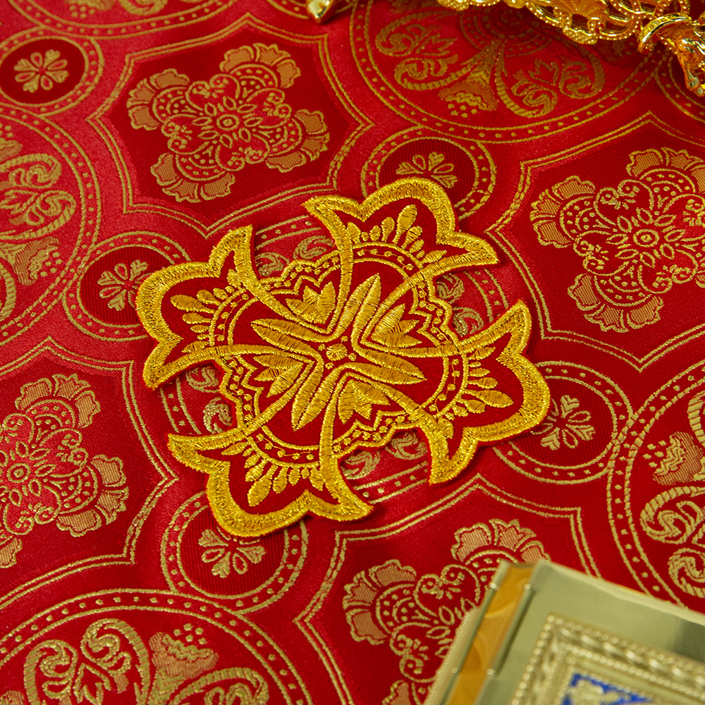 Пелена на престол комбинированная, красная с золотом, вышивка