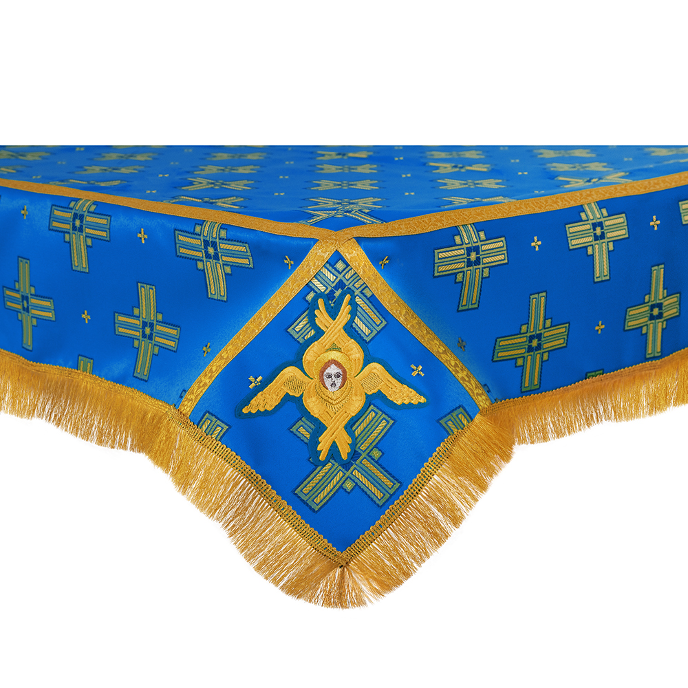 Пелена на престол с вышитыми херувимами, шелк "Святительский", голубая с золотом