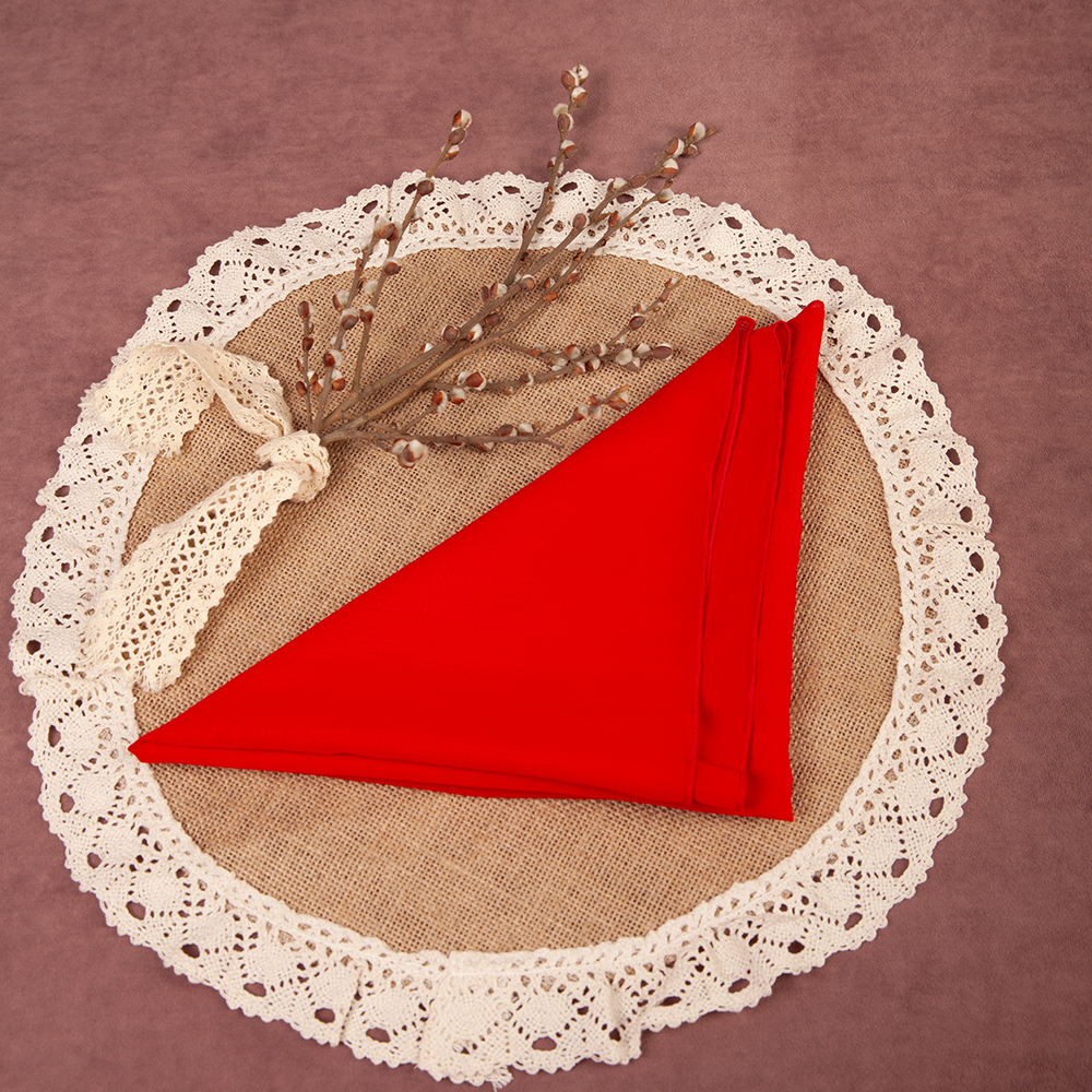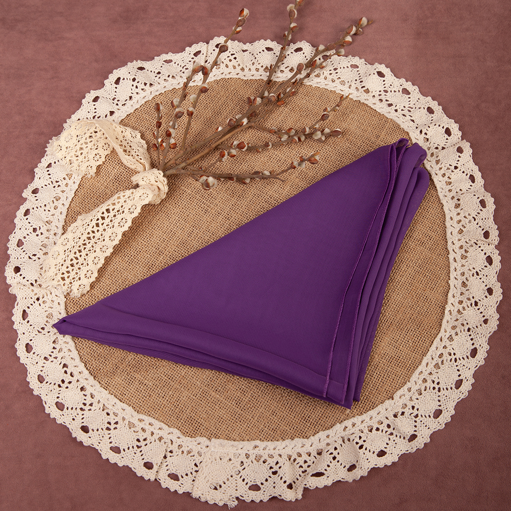 Женский платок сшит из качественного креп-шифона. Благодаря креповой крутке нитей ткань имеет выраженный рельеф, благодаря которому не скользит на волосах и не сползает во время поклонов. Края аккуратно обработаны нитью в цвет. Платки представлены в разных цветах согласно принятой богослужебной традиции: желтом, белом, черном, сиреневом, красном, зеленом, голубом.
