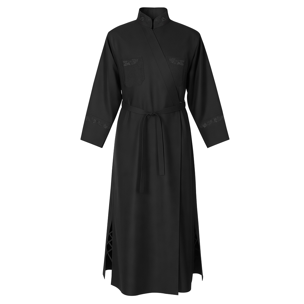 Подрясник мужской греческий черный с вышивкой, костюмная ткань