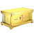 Рака под мощи с массивной прямоугольной подставкой в общем стиле и цвете под золото изготовлена из нержавеющей стали. Для защиты металла на поверхность нанесен тонкий слой нитрида титана. Передняя часть подставки украшена яркими накладными элементами из латуни и изображением равностороннего креста, рельеф которого подчеркивает цветная эмаль. По периметру раки и на накладных элементах подставки нанесен рельефный орнамент, выполненный по технологии чеканки.
