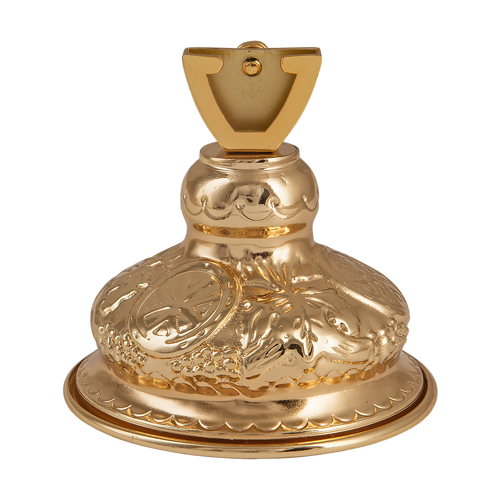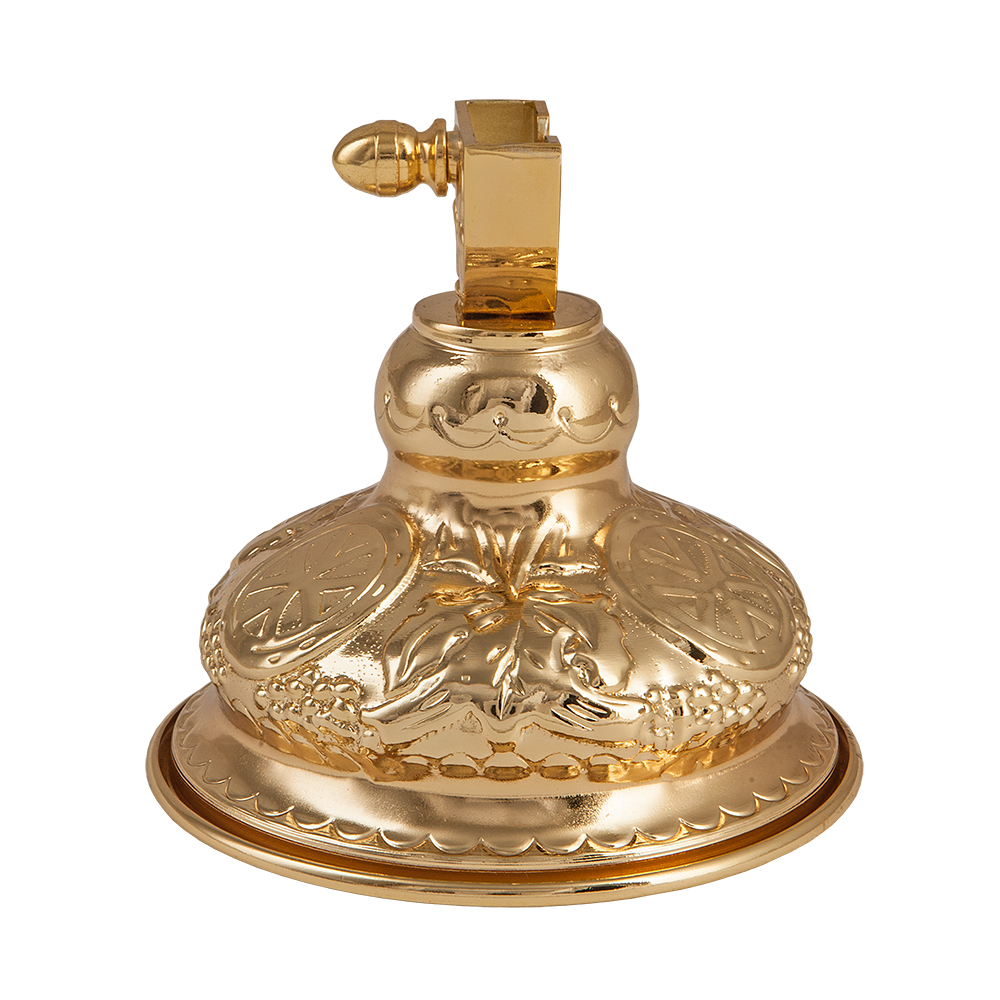 Подставка под напрестольный крест изготовлена из стойкого цинкового сплава. Устойчивость конструкции обеспечивает широкое основание, поверхность которого украшена рельефным узором. Опора округлой формы в верхней части изделия обеспечивает строго вертикальное расположение креста на престоле и позволяет быстро извлечь его для выноса прихожанам.