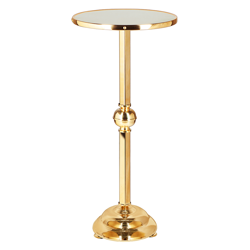 Подставка изготовлена из высококачественной латуни. Расширяющееся книзу основание надежно опирается на небольшие ножки округлой формы. Подставка может использоваться под ковчег с мощами, цветочные композиции для украшения Плащаницы или икон и т.д.