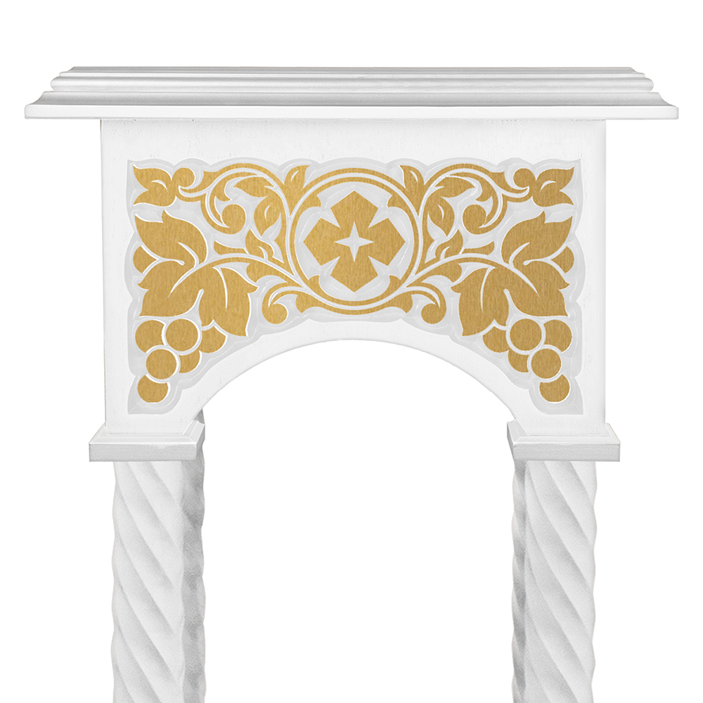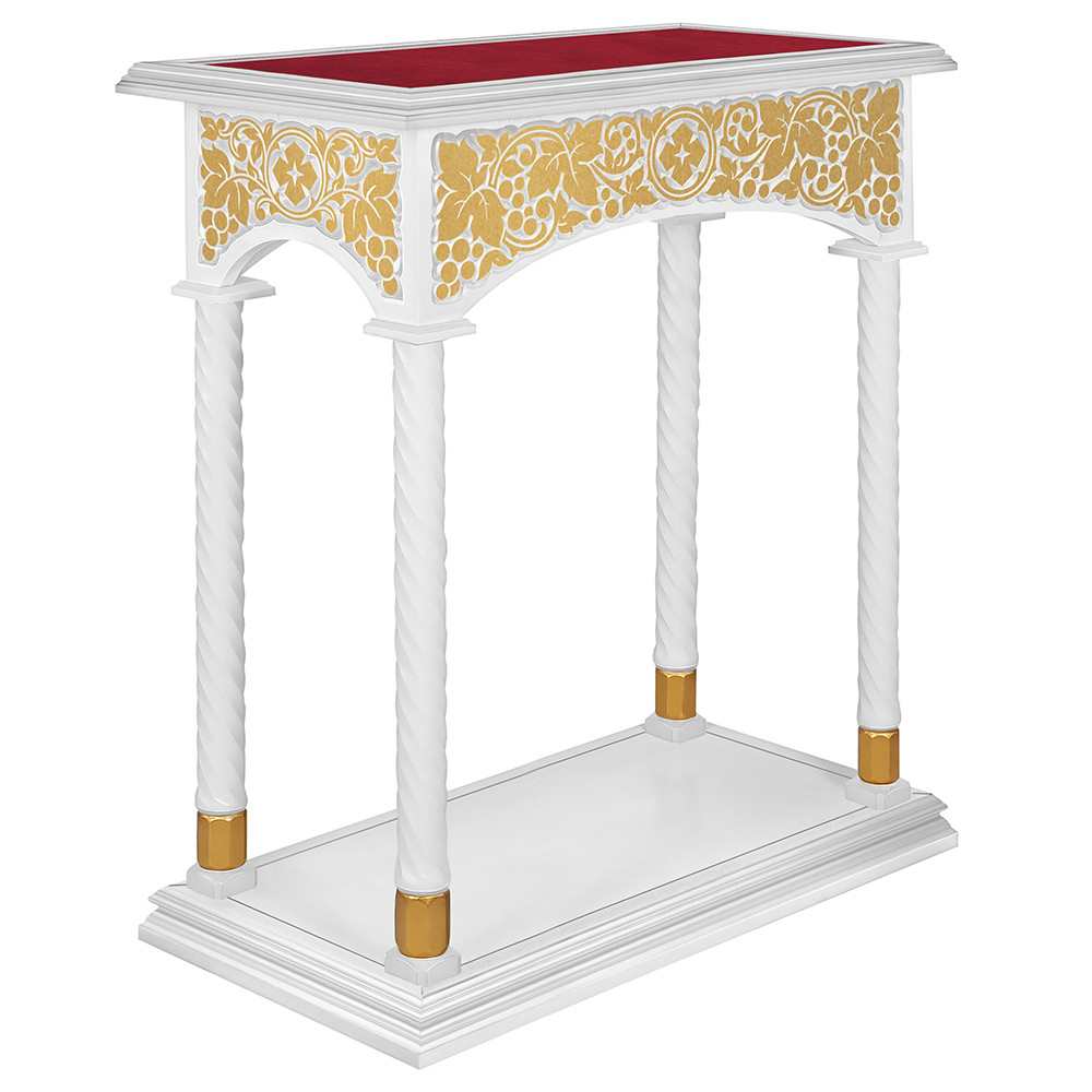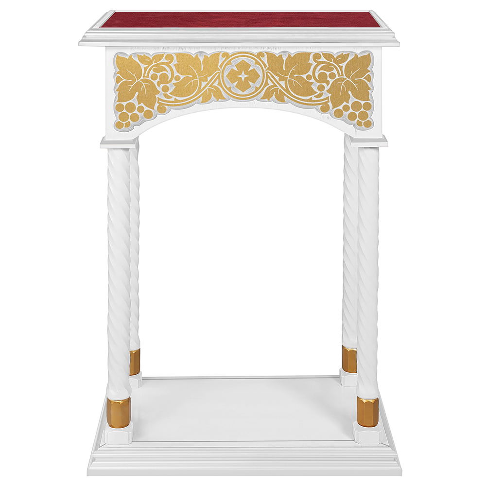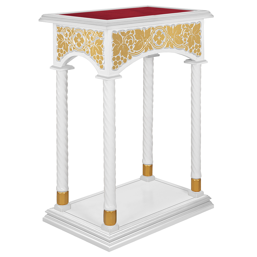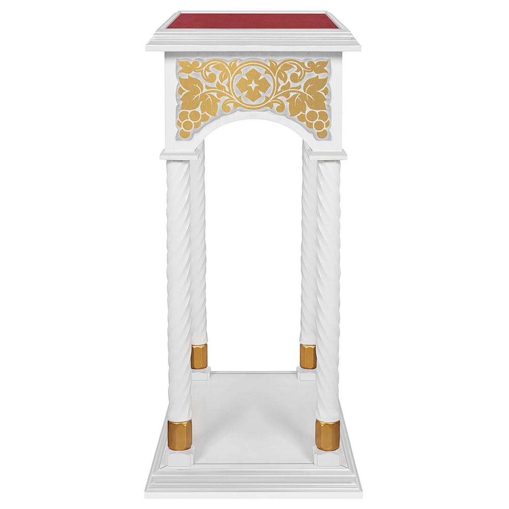 Подставка церковная "Суздальская", белая с золотом (поталь), колонны, красная ткань