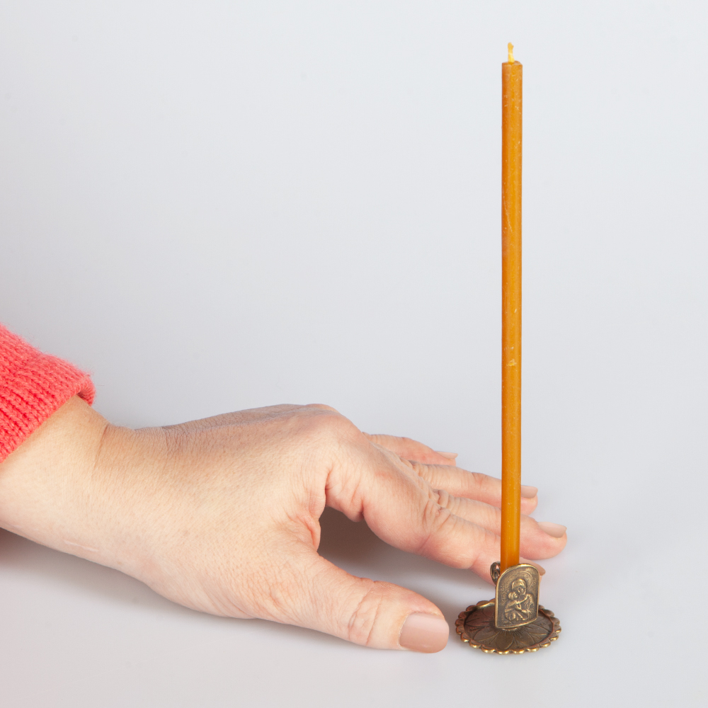 Подсвечник настольный литой с ручкой "Богородица", бронза, 3,4х3 см