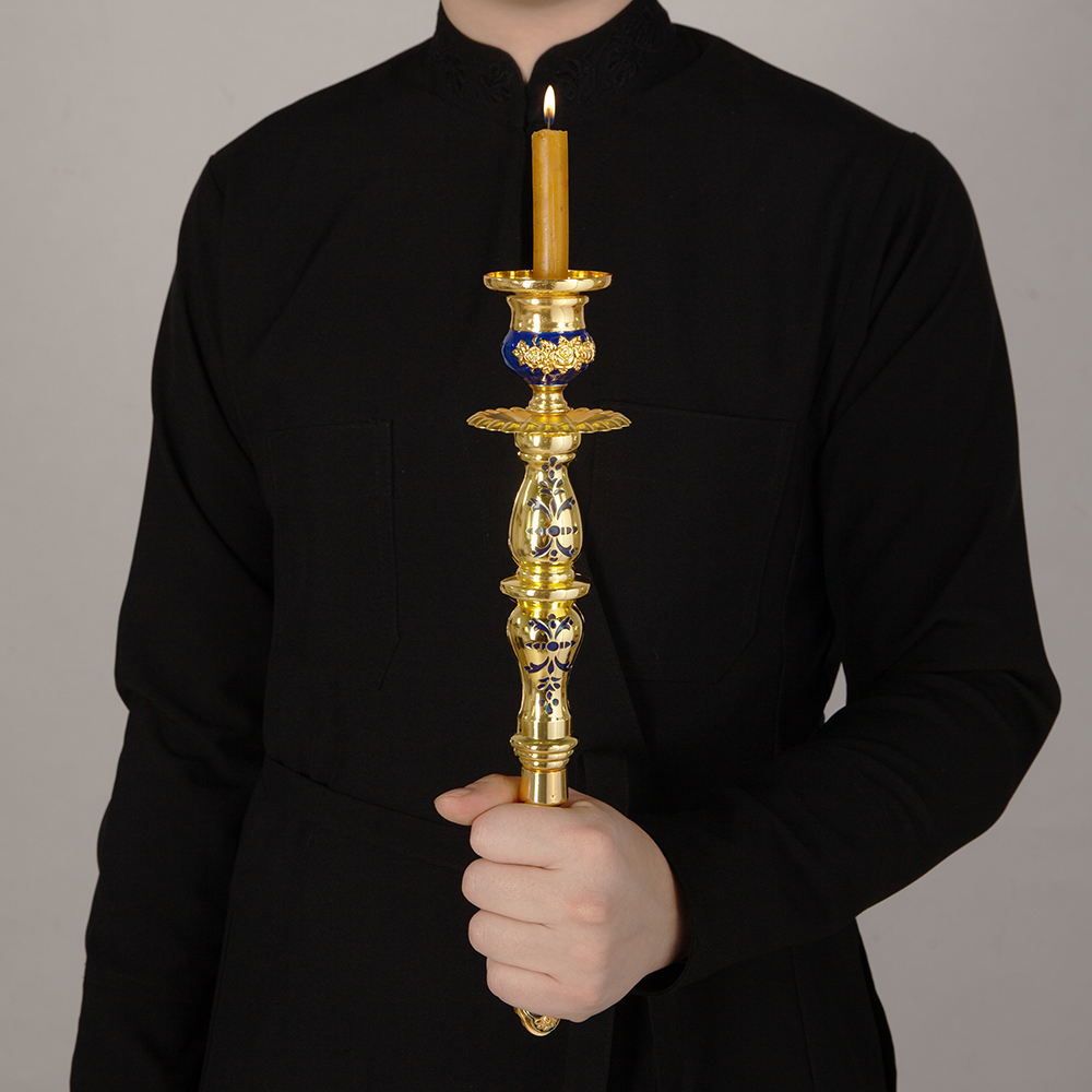 Подсвечник диаконский из цинкового сплава, эмаль, №2, длина 34 см