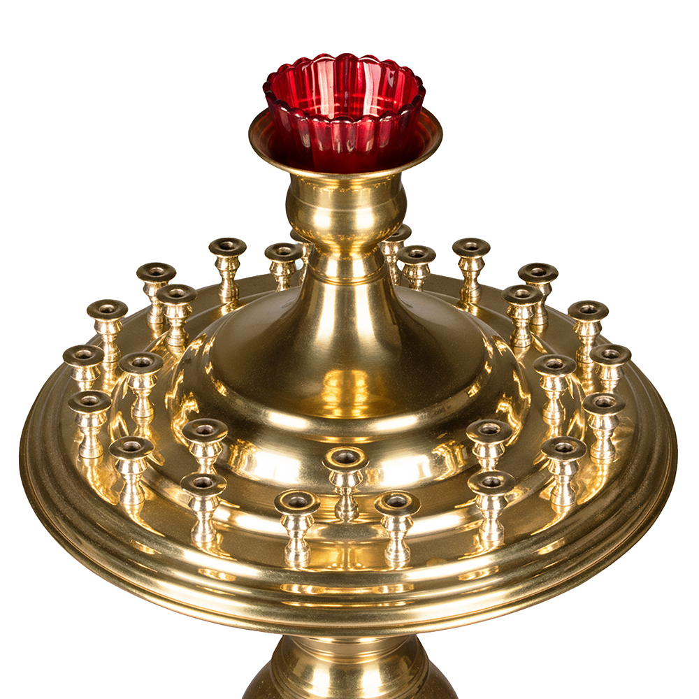 Напольный подсвечник на 27 свечей из латуни для обустройства внутреннего пространства храма.