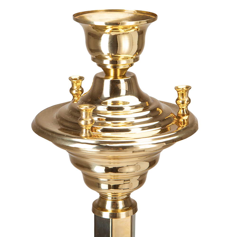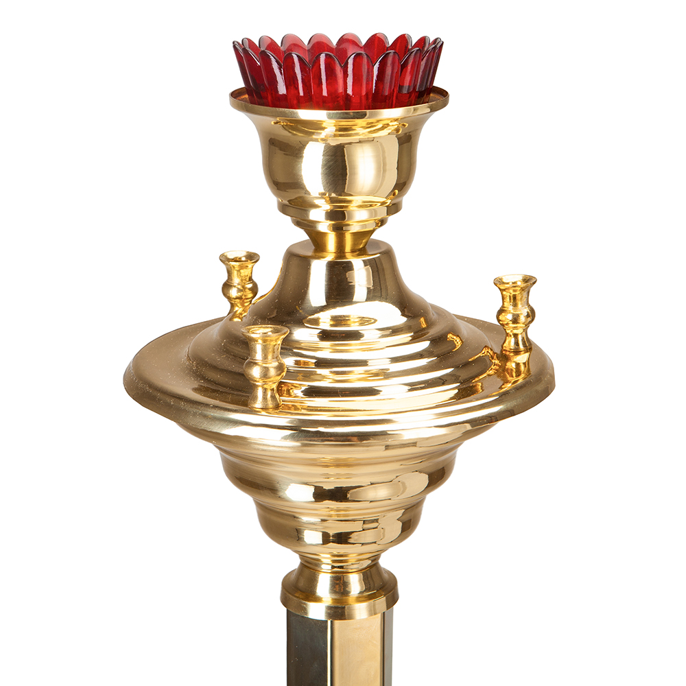 Размеры: высота 125 см (высота до чаши 118 см), диаметр 25 см, диаметр отверстия для свечей 0,9 см. Диаметр подлампадника - 9 см, высота - 8,5 см.