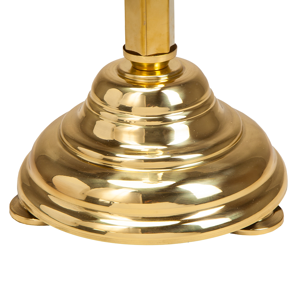Напольный подсвечник из стойкого латунного сплава на разное количество свеч, установленный на круглое широкое основание со скрытыми ножками.