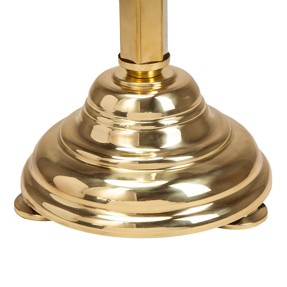 Напольный подсвечник из стойкого латунного сплава на разное количество свеч, установленный на круглое широкое основание со скрытыми ножками.