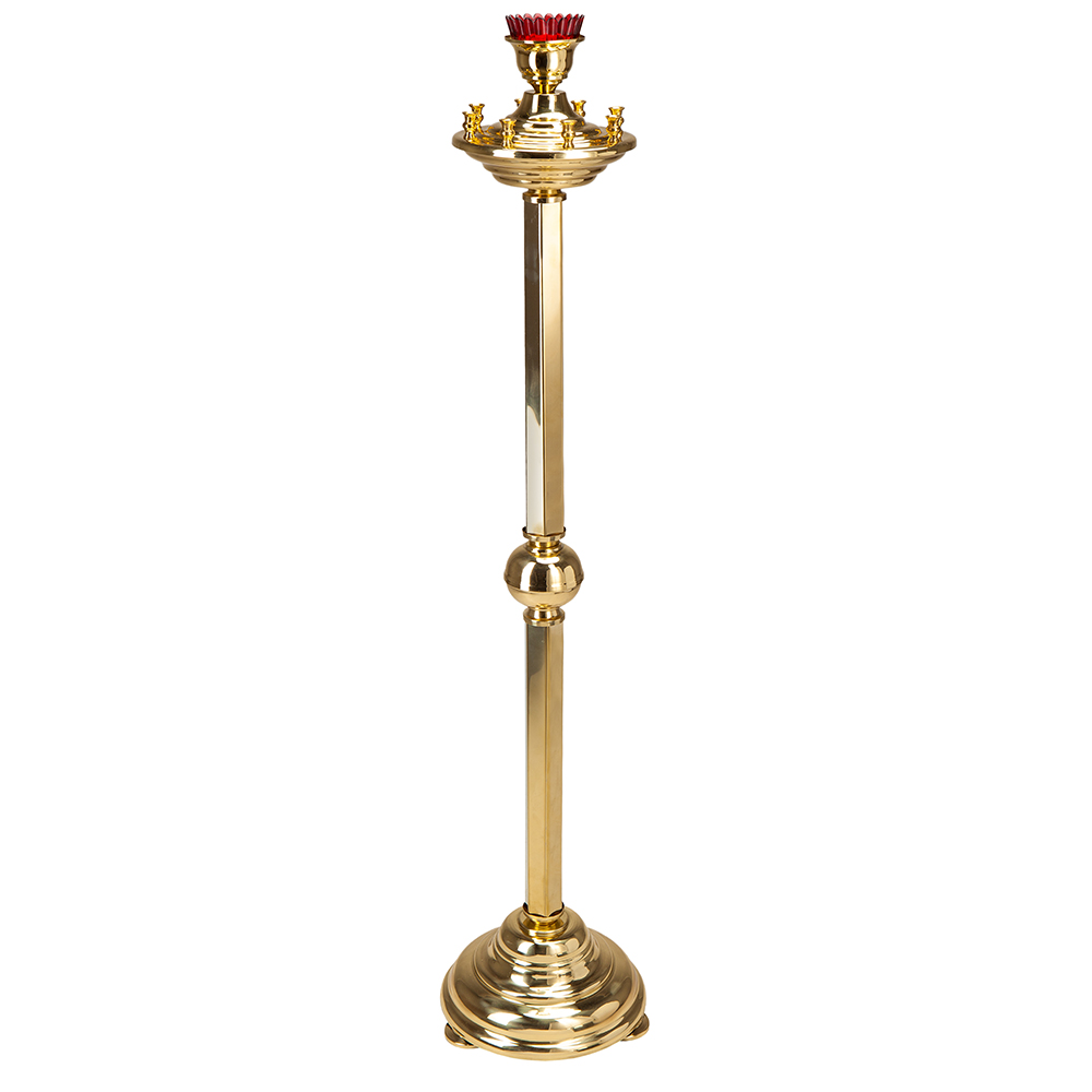 Размеры: высота 125 см (высота до чаши 114 см), диаметр 25 см, диаметр отверстия для свечей 0,9 см. Диаметр подлампадника - 9 см, высота - 8,5 см.