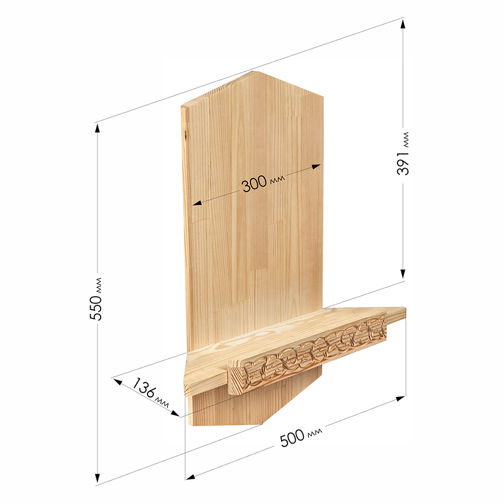 Одноярусная полка для икон "Суздальская" выполнена из массива сосны, имеет компактные размеры и небольшой вес. Полочку украшает рельефная гравировка в виде растительного орнамента. Данная модель удобна для размещения в углу комнаты благодаря эргономичной кострукции. Изделие поставляется в разобранном виде.
