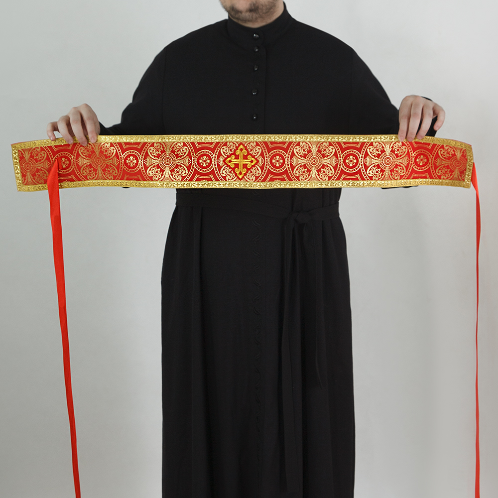 Иерейский пояс из церковного шелка на подкладе из креп-сатина с отделкой галуном.