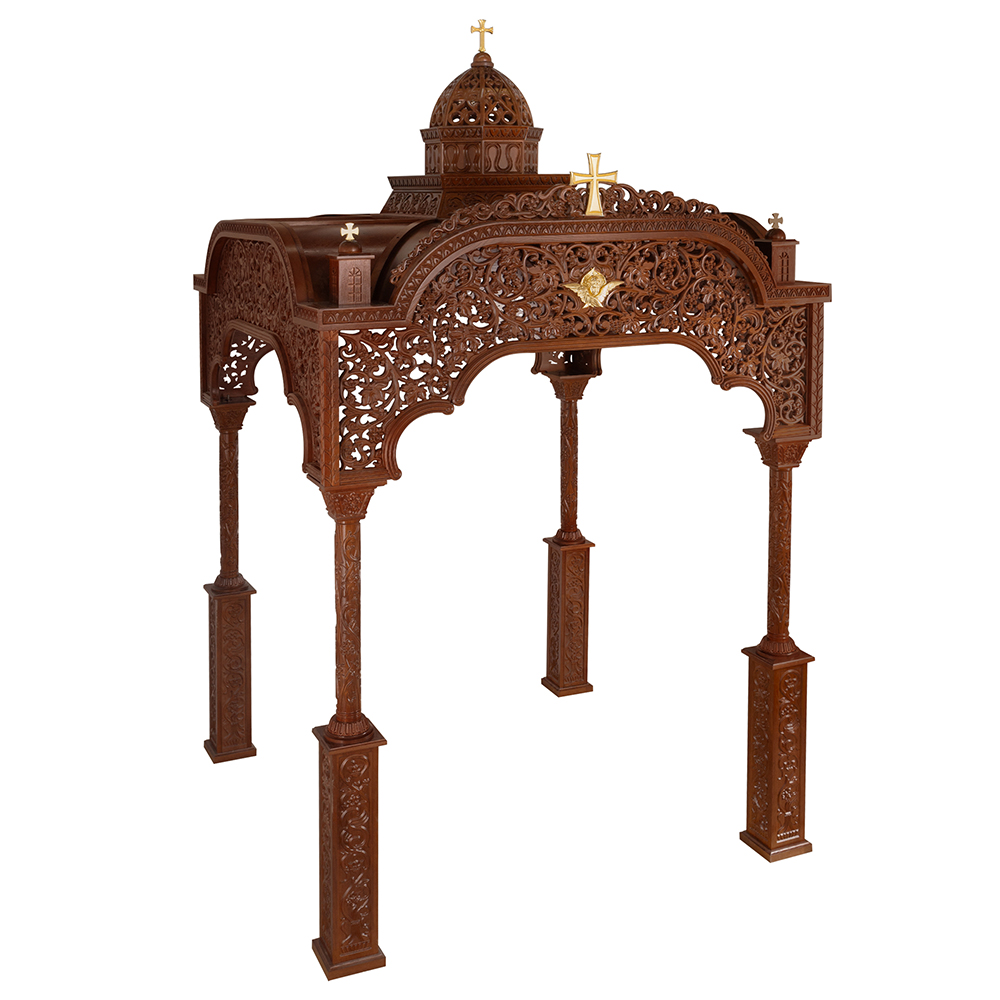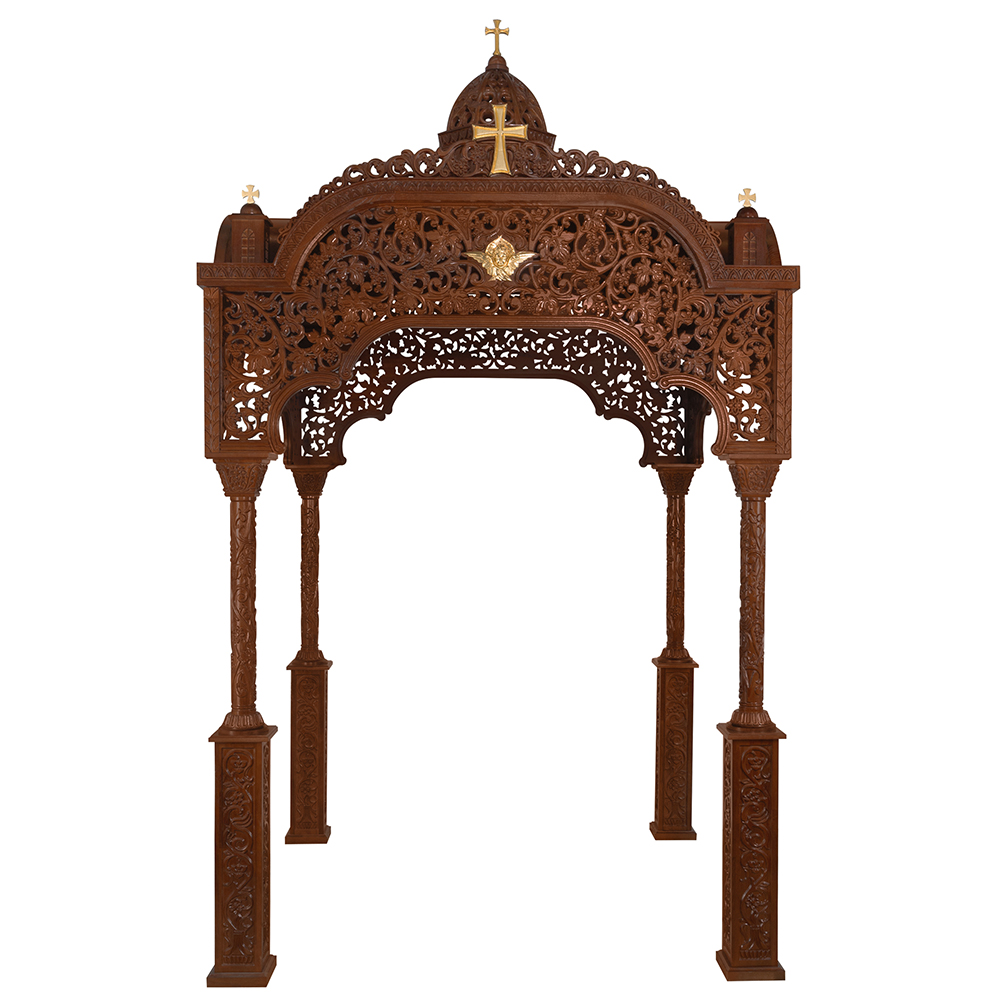 Облачение на престол, цвет "кипарис" с золотом (поталь), резное, с сенью, 200х200х350 см