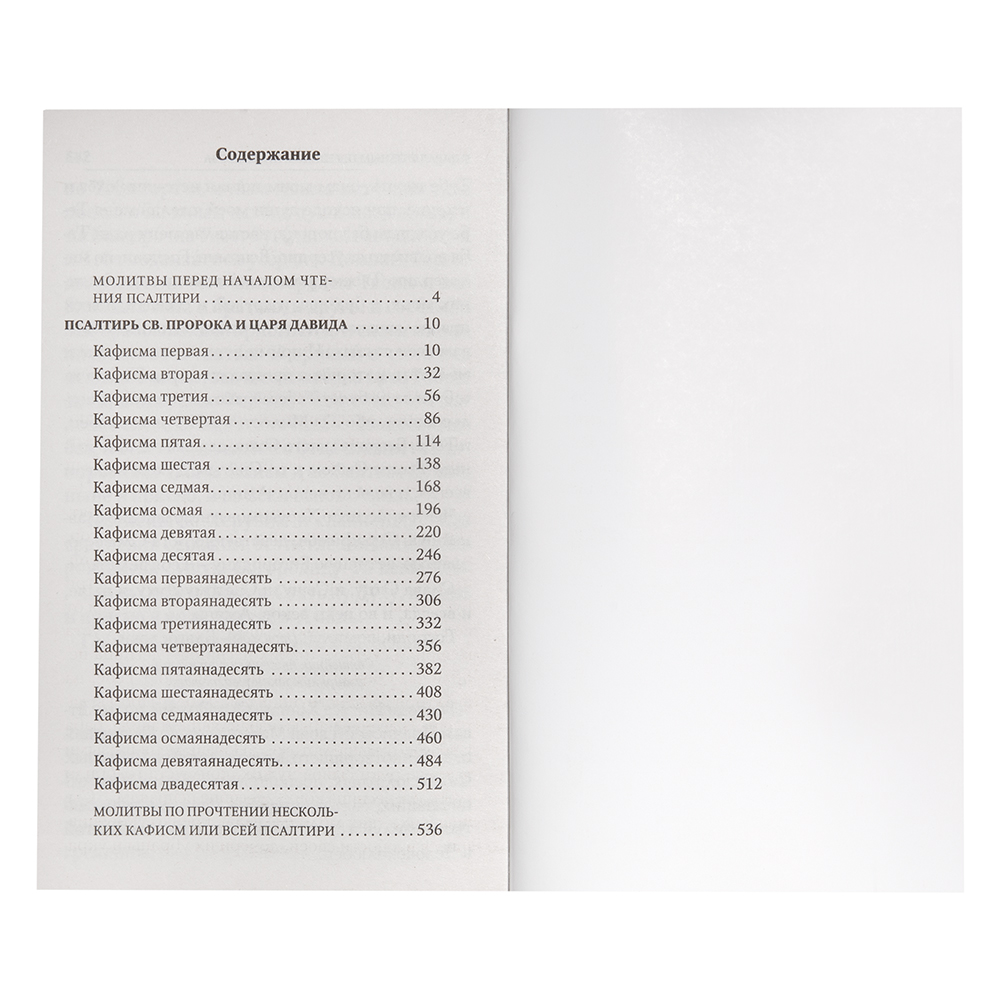 Также в издание включены молитвословия, которые добавляют к кафизмам во время чтения Псалтири за живых и усопших.