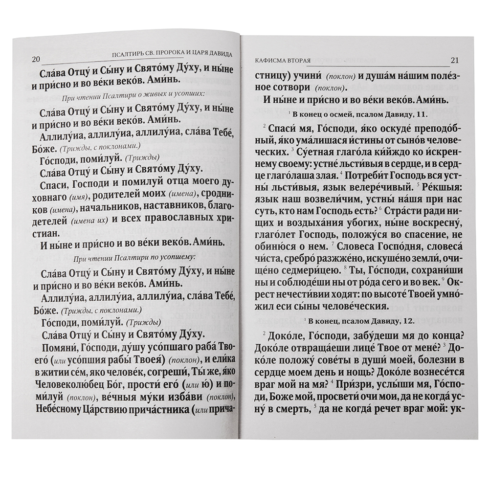 Псалтирь – часть Священного Писания, богодухновенная книга и бесценный молитвенный опыт человека, живущего верой. Молитва по ней очищает душу, дарит утешение и надежду в самых сложных ситуациях. Это издание будет полезно всем, кто намерен расширить свое молитвенное правило одной или несколькими кафизмами, а также желает глубже изучить одну из важнейших книг Ветхого Завета.