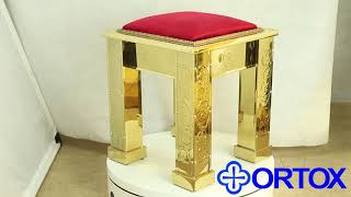 Церковный пуф «Иерусалимский» изготовлен из высококачественной нержавеющей стали. Основание конструкции вырезано из прочной ДСП, сидение обшито мебельной тканью, цвет которой можно выбрать из нескольких доступных вариантов. Массивная модель надежно опирается на четырехгранные ножки, украшенные чеканным узором. Пуф украсит интерьер алтарной части храма и станет отличным дополнением к обстановке, для обустройства которой была выбрана металлическая мебель.