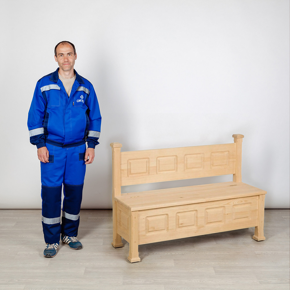Скамья-сундук серии "Воронежская" из древесины сосны в цвете "натуральное дерево".