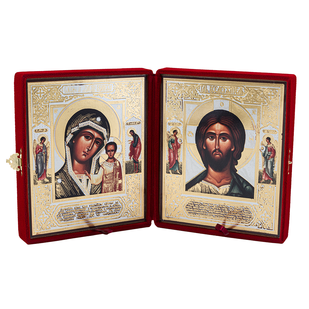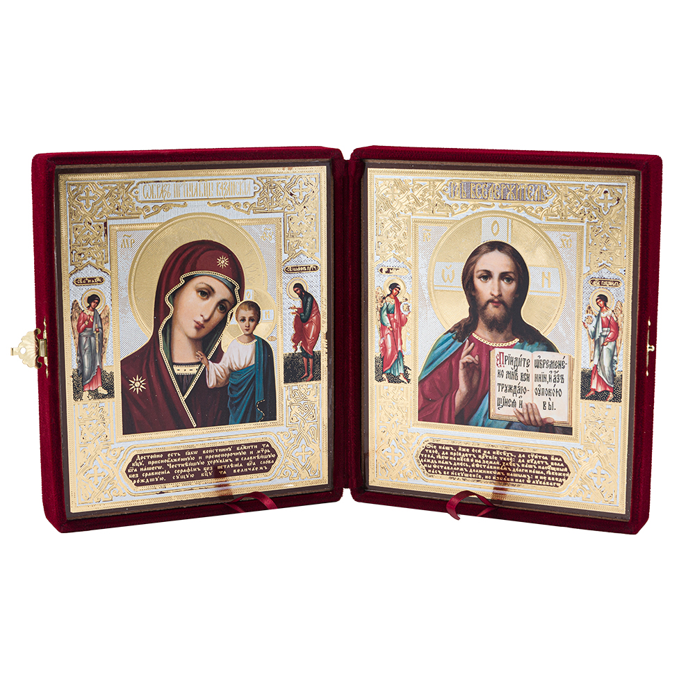 Складень венчальный с ликами Спасителя и Божией Матери "Казанская", 18,5х22 см, бархат, №1