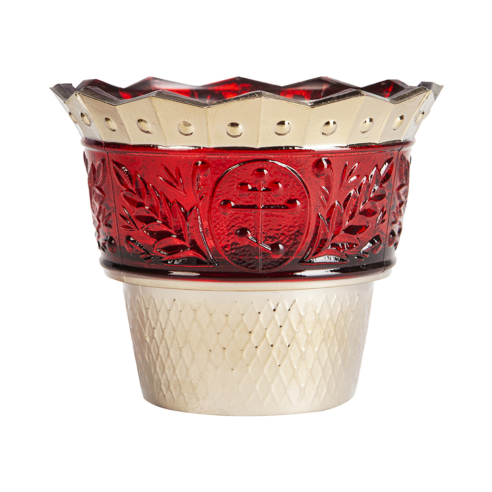 Стаканчик для лампады модели «Ландыш» изготовлен из качественного окрашенного стекла. Его украшают рельефный край, придающий изделию сходство с цветком, а также объемный узор на поверхности. Благодаря устойчивому основанию стаканчик можно использовать в качестве емкости под масло в церковном светильнике или в качестве домашней лампады.