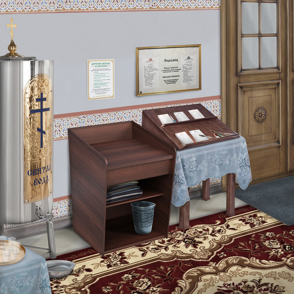 Пеленальный стол «Самарский» изготовлен из качественной ЛДСП. Невысокая конструкция имеет удобный ящик и вместительную полку для хранения. Пеленальный стол поможет подготовить ребенка к Таинству Крещения, а позже быстро согреть и одеть его после окунания в купель.
