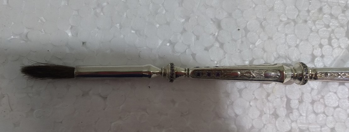 Стрючица из ювелирного сплава в серебрении, с запасными кисточками, длина 20,5 см, №3, У 29-1647