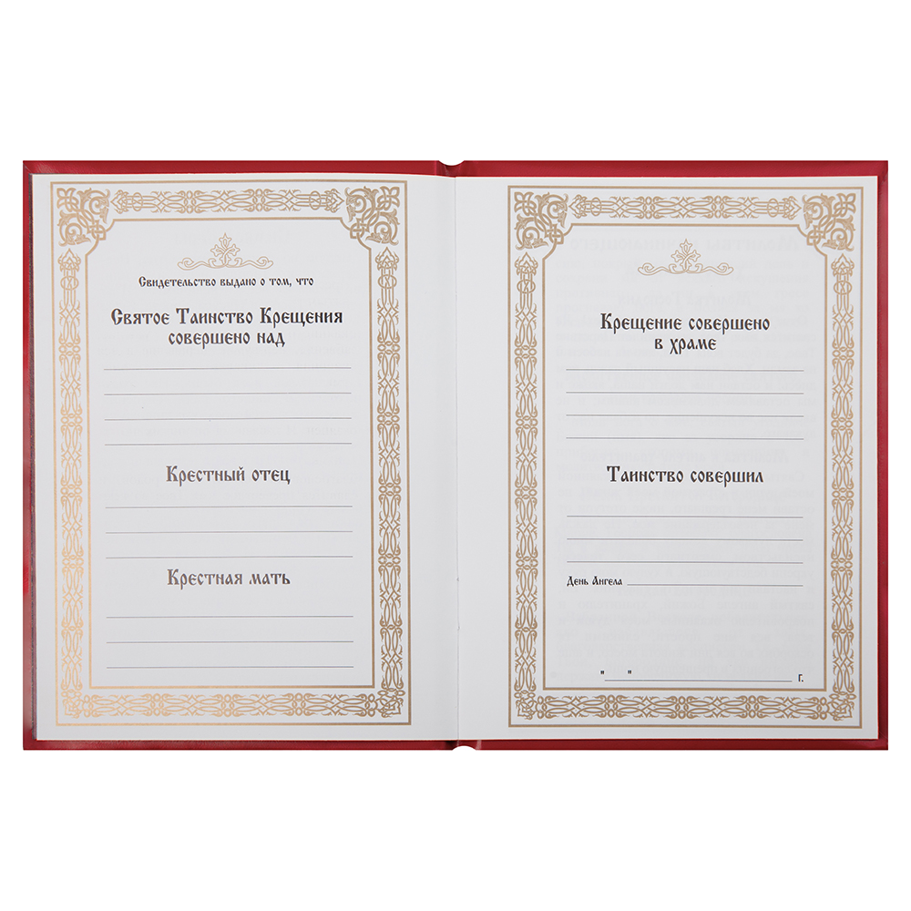 Благодаря высокому качеству изготовления свидетельство сохранит первоначальный вид в течение многих лет и станет напоминанием о важном событии принятия Таинства Крещения.