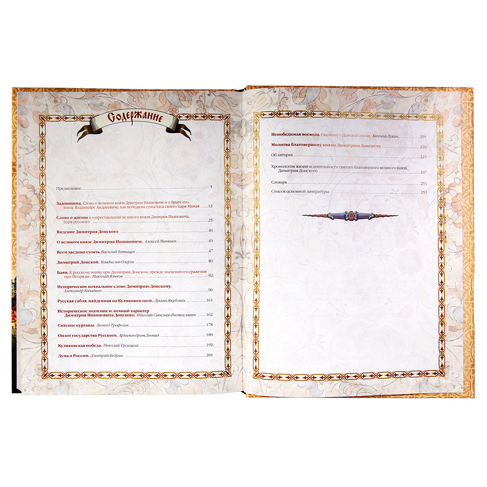 Помимо жития Димитрия Донского, в сборник вошли сочинения русских историков, стихотворения поэтов разных эпох, посвященные благоверному князю и Донской иконе Богородицы, обретенной на Куликовом поле.