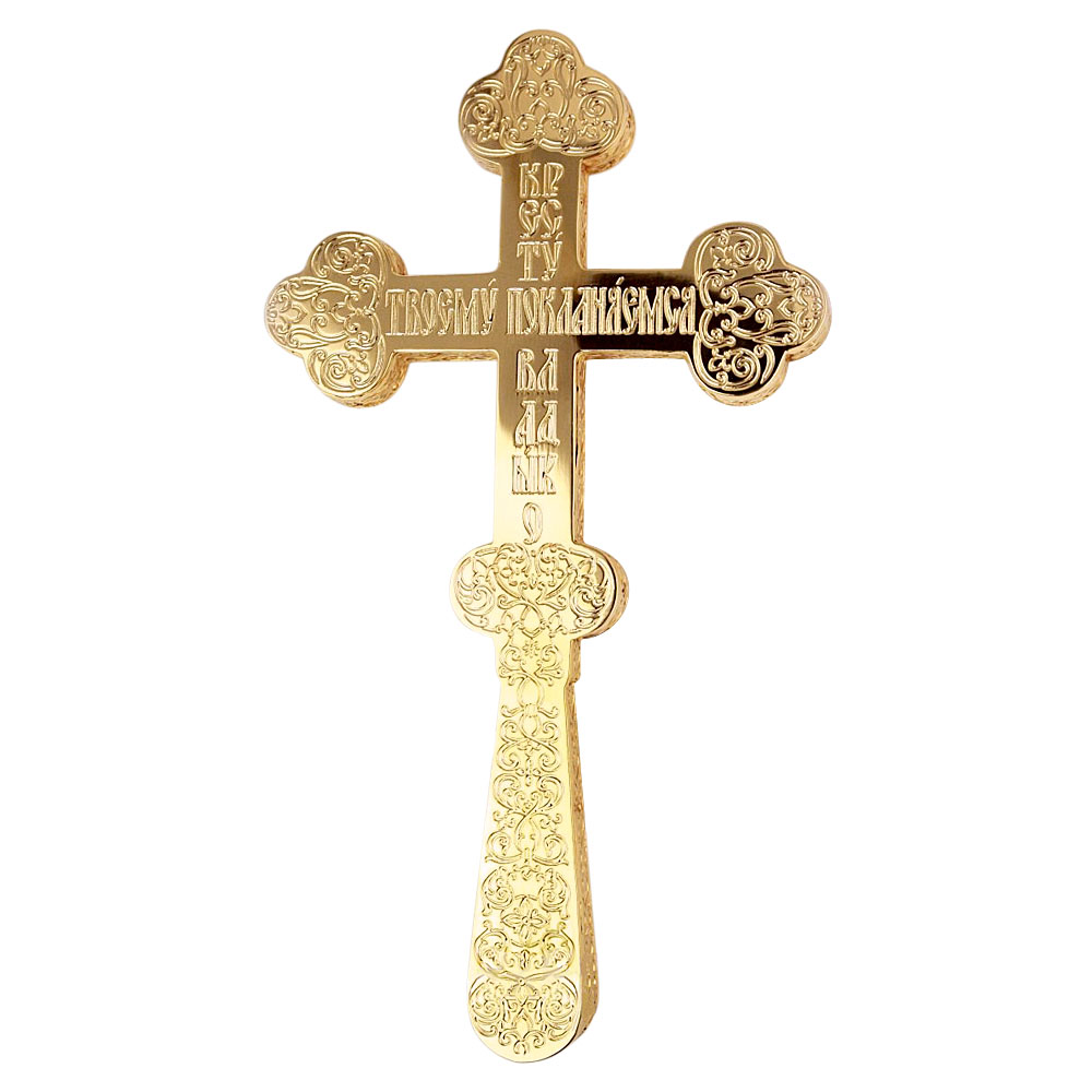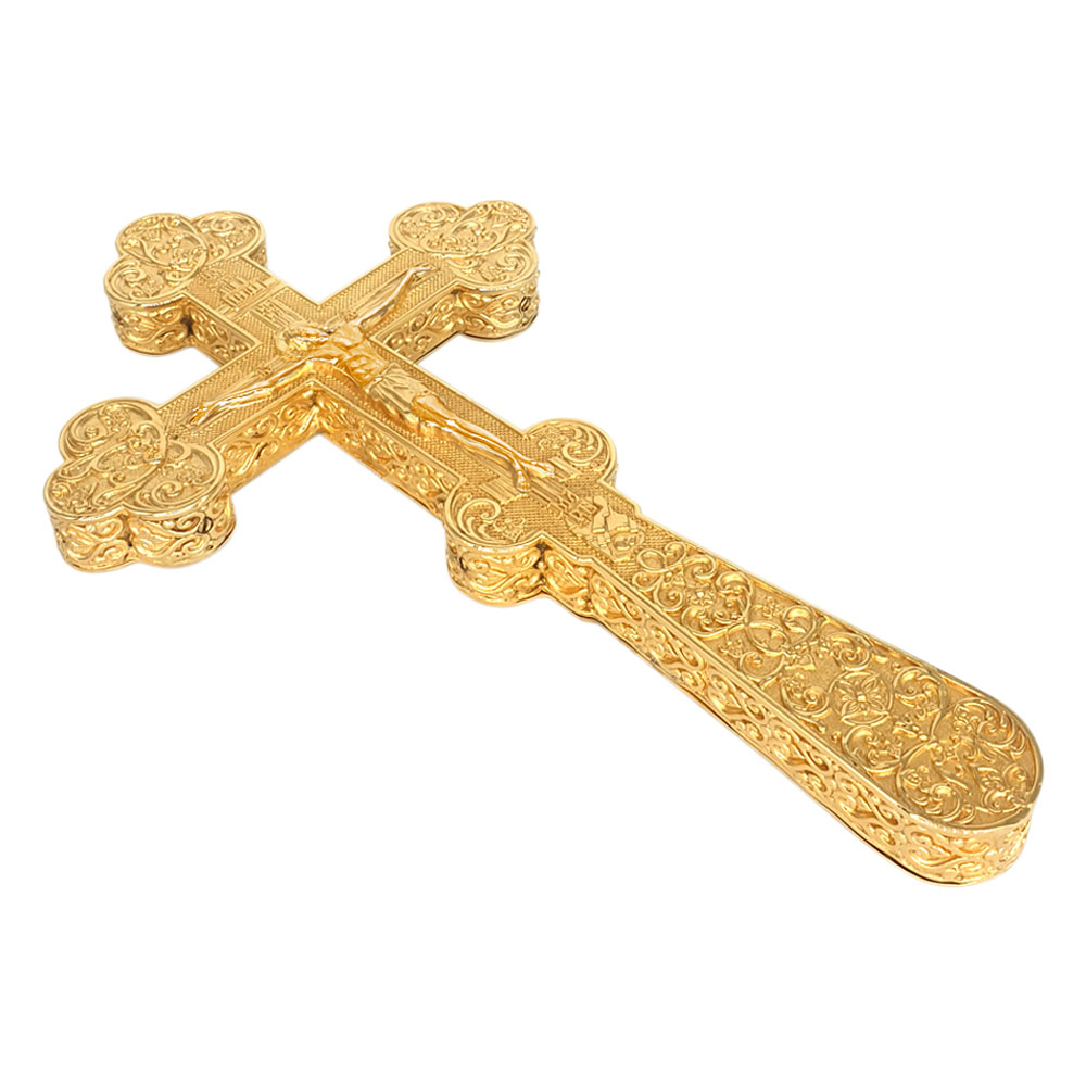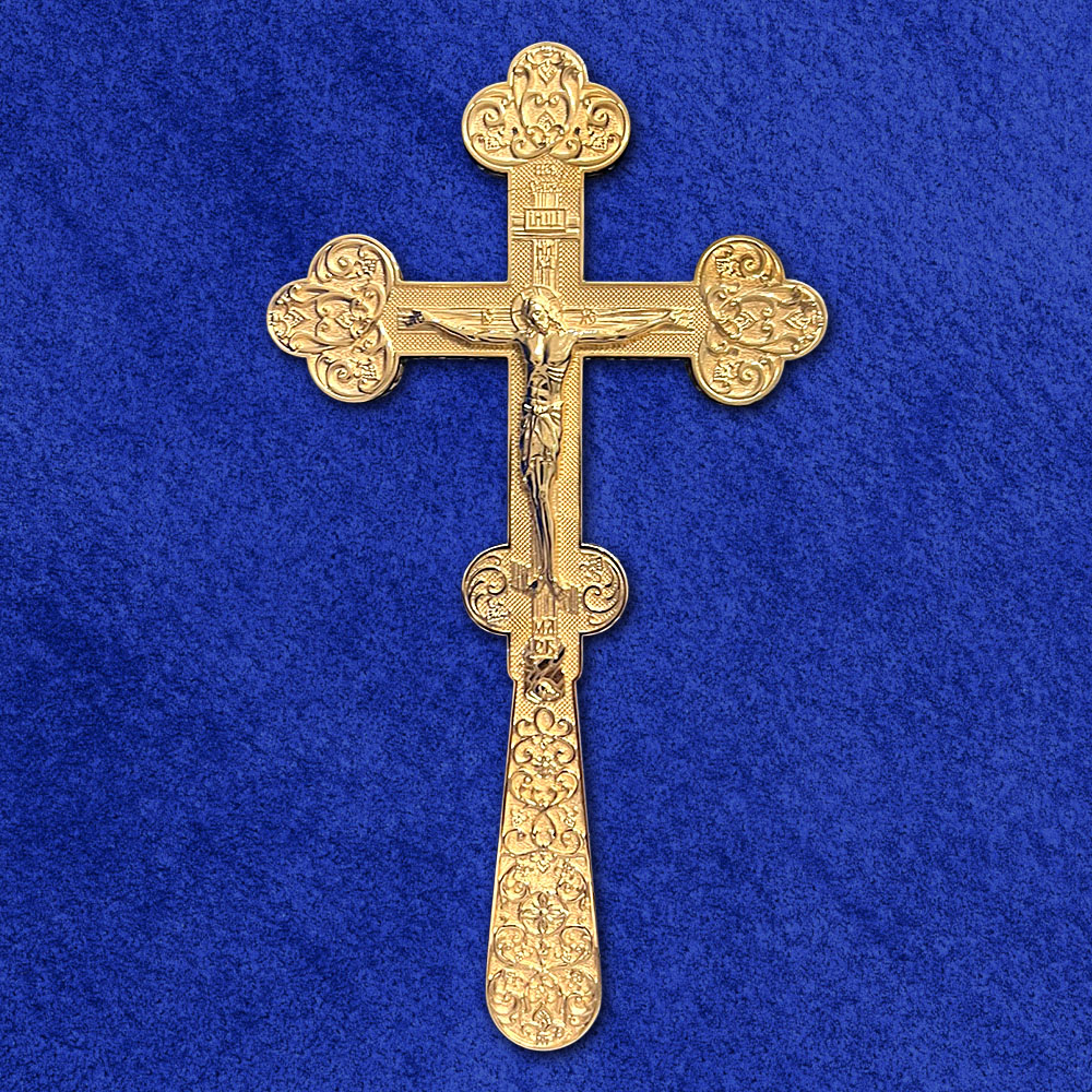 Крест напрестольный / требный из ювелирного сплава в позолоте, высота 20 см