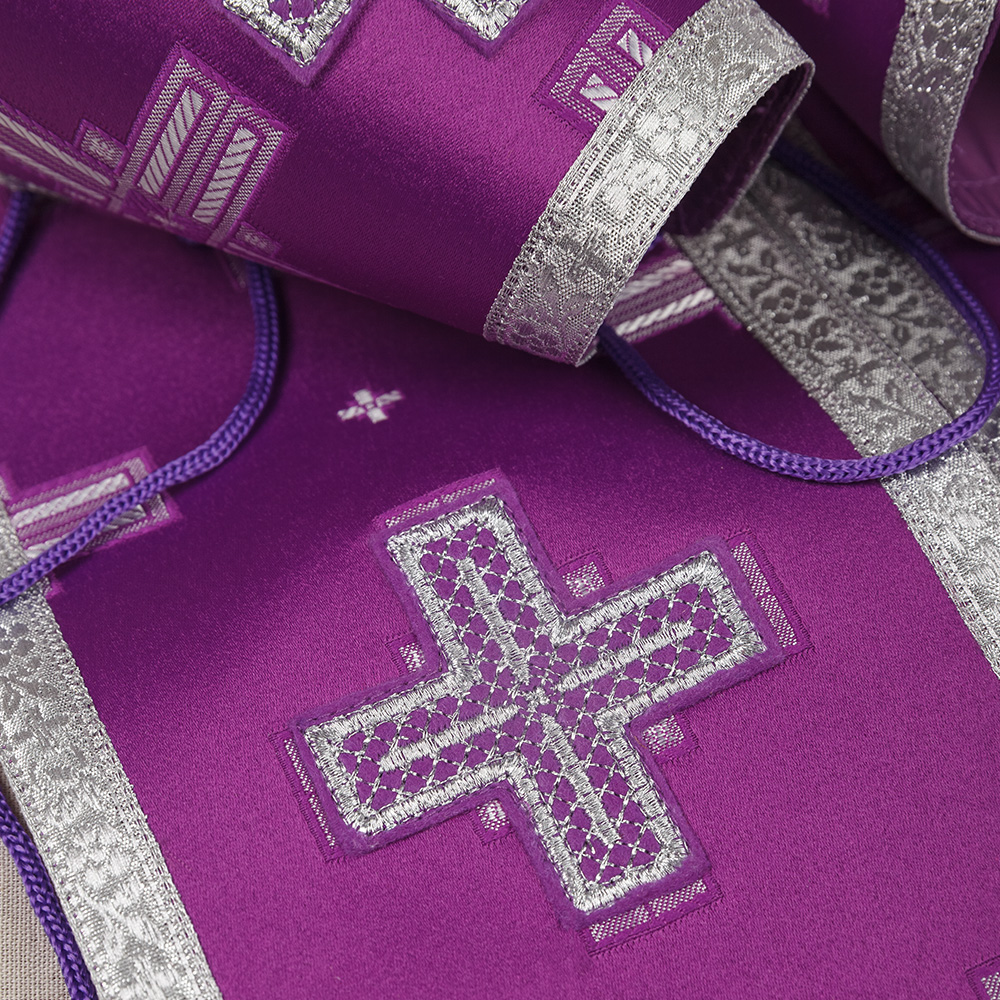 Требный набор / комплект, шелк "Святительский", с подкладом, фиолетовый с серебром