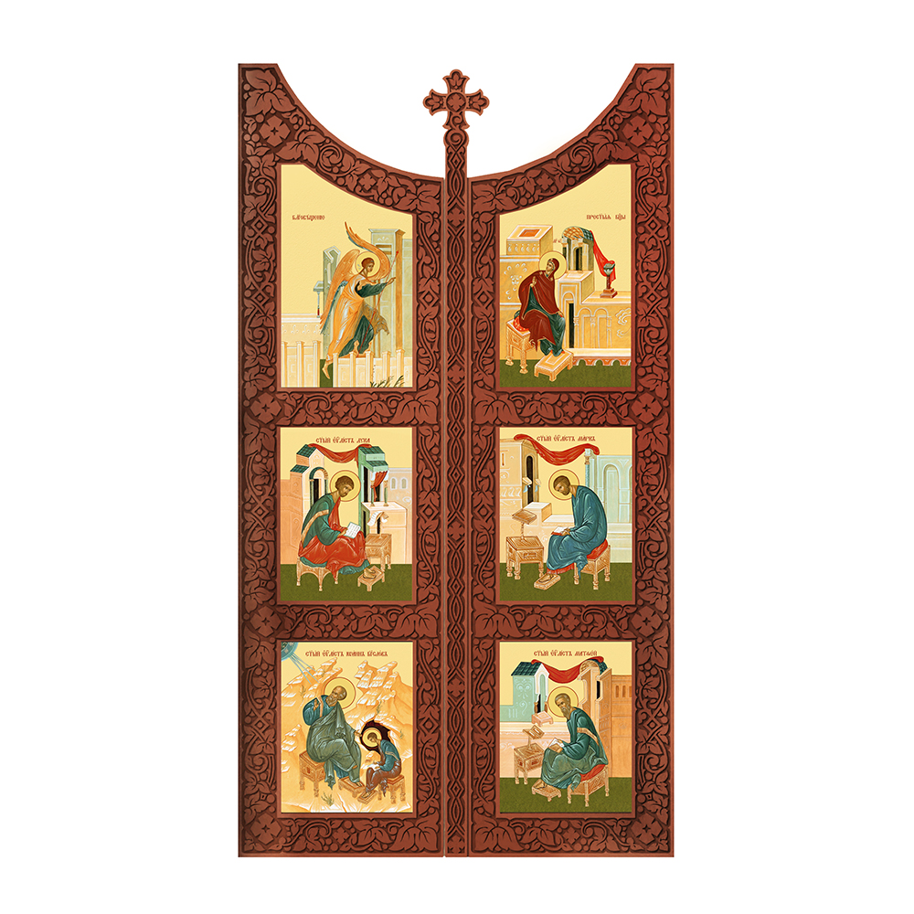 Царские врата для иконостасов серии "Суздальская" изготовлены из натуральной древесины ясеня. Орнамент, нанесенный по технологии низкопрофильной резьбы, созвучен с декором, украшающим поверхность основного изделия. В коллекции представлены модели разных оттенков, выбрать которые можно с учетом качества отделки конструкции иконостаса. Также при оформлении заказа укажите желаемый размер конструкции из предложенных вариантов.