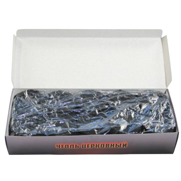 Уголь используется для каждения с незапамятных времен. В старину на Руси для приготовления церковного угля брали головешки и древесную золу, остающиеся после розжига печи. Потому традиционно в нашей стране кадят на березе и некоторых породах фруктовых деревьев. Технология проста: прогоревшая древесина измельчается и прессуется в круглых формах. Такие “таблетки” удобно использовать как в кадилах на богослужении, так и в небольших домашних кадильницах. Благодаря особым добавкам, такой церковный уголь легко воспламеняется и хорошо отдает тепло, нагревая ладан.