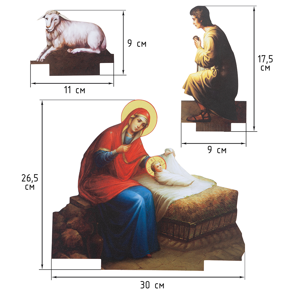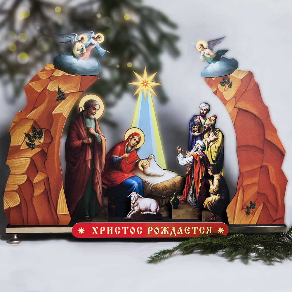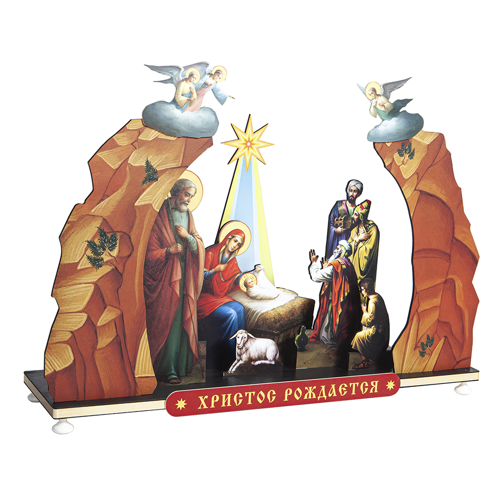 Вертеп "Рождественская ночь" из прочного ПВХ на устойчивой подставке. Изображения нанесены методом УФ-печати.