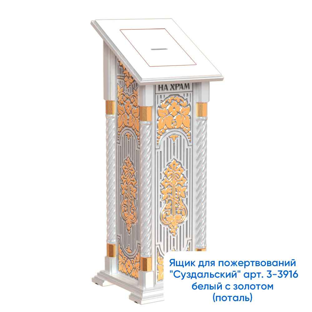 Ящик для пожертвований "Суздальский" белый с золотом (патина), тумба, напольный, 46х46х130 см